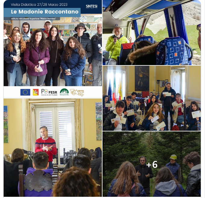Nel contesto del progetto #AIMA14, promosso dall’Unione dei Comuni “Madonie”, si è svolta una visita didattica (27-28 marzo) che ha coinvolto gli studenti dell’Istituto “Pietro Domina”. Grazie all’Unione dei Comuni “Madonie” presieduta dal Dott. Pietro Macaluso e alla società Sintesi, i giovani hanno avuto l’opportunità di esplorare le risorse ambientali-naturalistiche e geologiche del territorio ed apprezzare le ricchezze artigianali ed enogastronomiche madonite, con il supporto di esperti e imprenditori locali che hanno condiviso il successo delle loro attività. Un ringraziamento speciale all’Ente Parco delle Madonie, all’Ente Gestore Demanio Forestale, alle Associazioni Haliotis e Madonie Outdoor, agli imprenditori locali, all’istituto “Pietro Domina” e ai ragazzi per aver contributo al successo di questa bellissima visita sulle Madonie! Nei prossimi giorni, condivideremo ulteriori foto dell’evento per farvi immergere nelle meraviglie delle Madonie e rivivere i momenti speciali vissuti dai giovani durante la visita didattica. Rimanete sintonizzati! SINTESI Online
